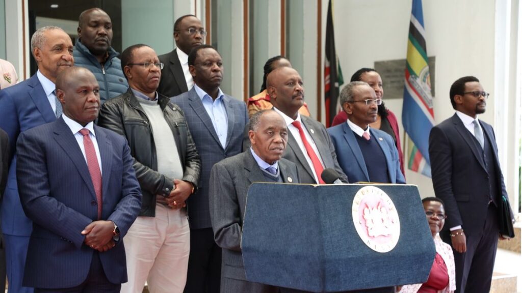 “Howsha ugu muhiimsan ee guddiga ayaa ah in la fududeeyo si habsami leh nidaamka kala guurka ee maamulka hadda jira iyo maamulka cusub,” ayuu yiri Joseph Kinyua iyadoo ay garab taagan yihiin xubnaha guddiga.