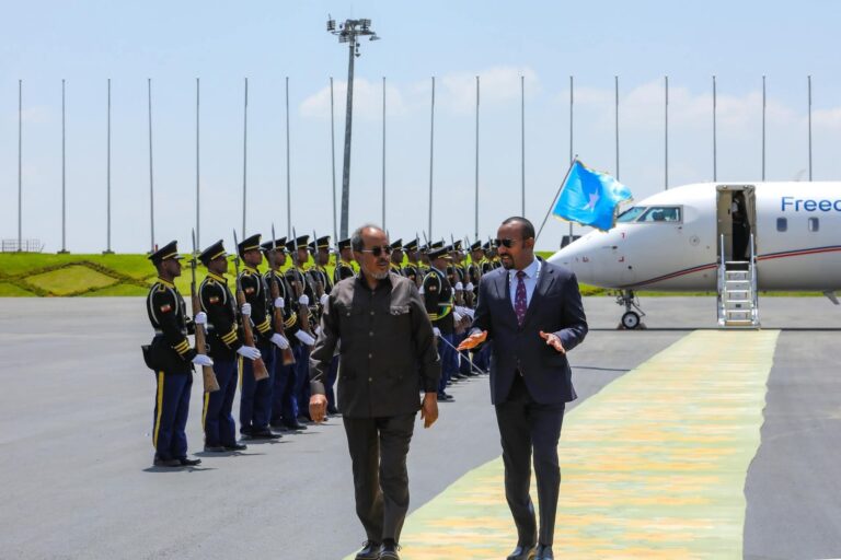 President Mohamud Ethiopian Prime Minister Abiy Ahmed, discussing ways to enhance development cooperation and shared interest between both nations in the region.