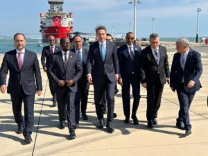 Somali authorities stated the vessel will drill offshore as part of ongoing efforts to develop significant oil and natural gas resources.